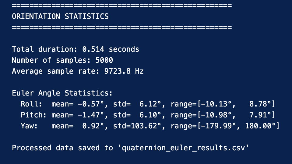 Implemented an Error-State Kalman Filter utilizing quaternion representation to avoid the singularities and gimbal lock inherent in Euler angle parameterizations. The filter maintains a 16-dimensional nominal state and a separate 15-dimensional error state, fusing measurements from 6-DOF IMU sensors and GPS receivers to produce optimal orientation and position estimates.